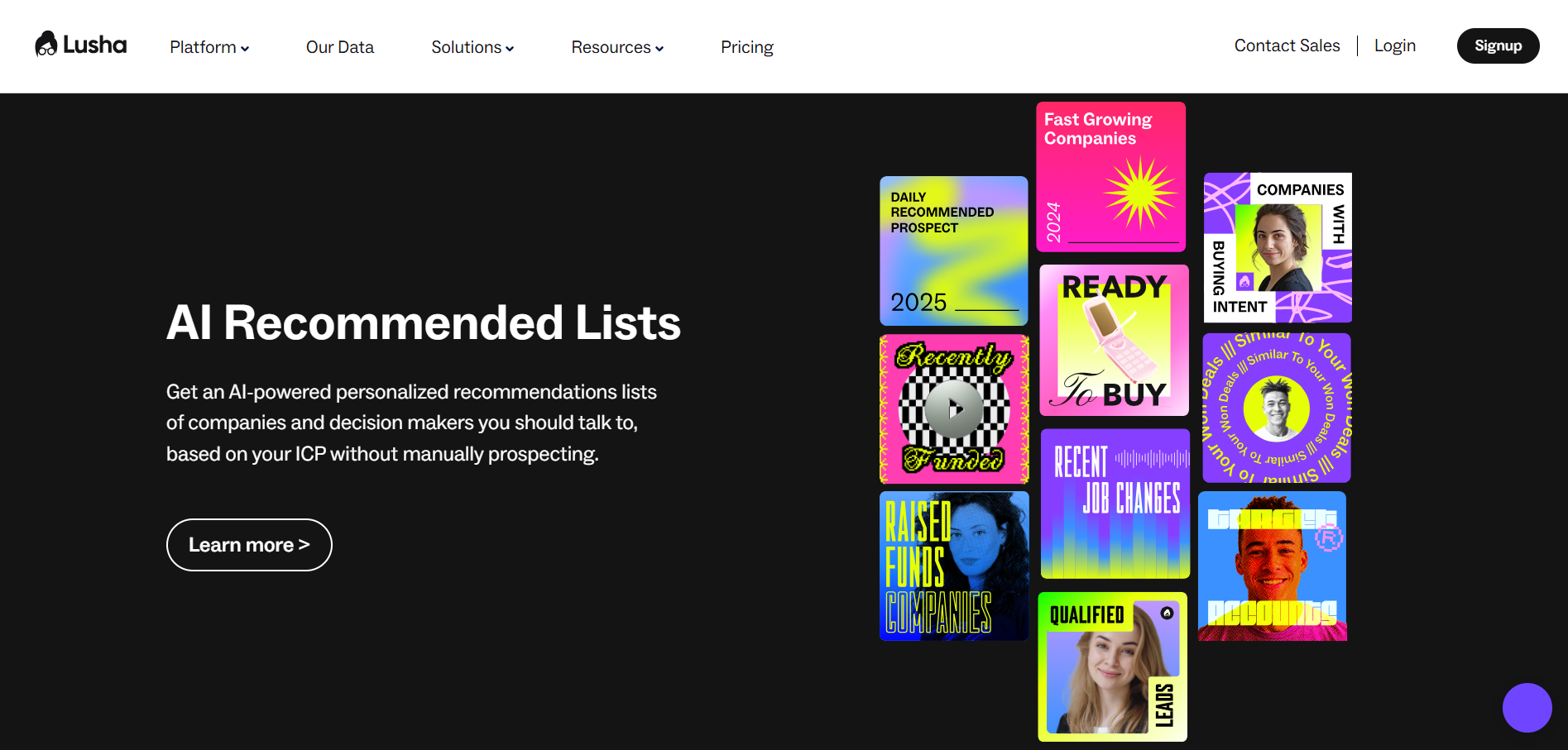 Lusha specializes in contact enrichment and email discovery, providing accurate contact information for prospects identified through other channels.
